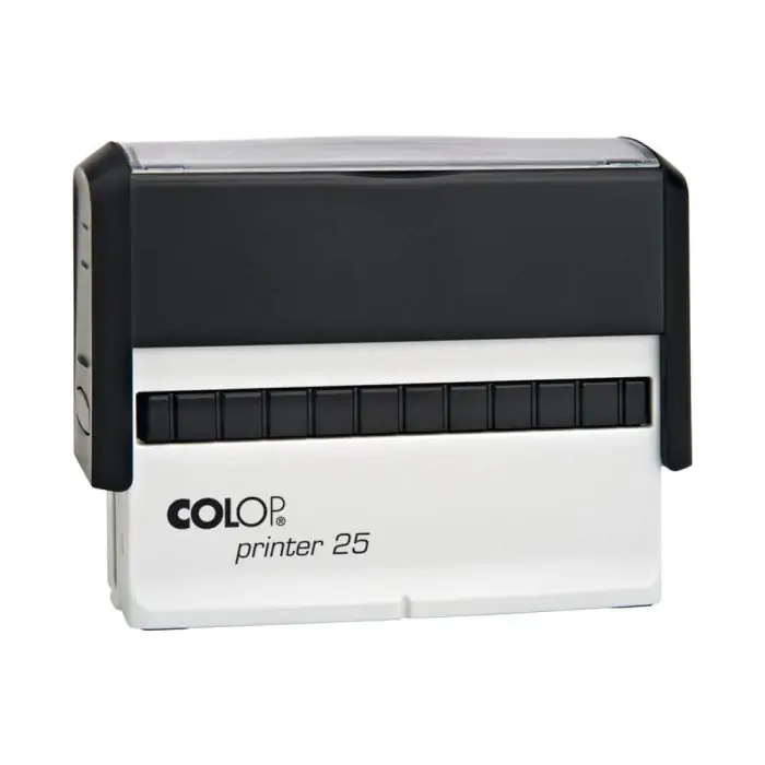 O COLOP Printer 25 foi concebido para proporcionar máxima eficiência em escritórios, escolas, lojas bem como ambientes administrativos. A sua construção robusta e o design ergonómico asseguram uma experiência consistente e de elevada qualidade, ou seja, mesmo em utilizações frequentes.